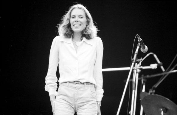 Today is the birthday of Canadian singer-songwriter Joni Mitchell, born Roberta Joan Anderson in Fort Macleod, Alberta (1943). She contracted polio as a kid, and although she recovered, her fingers suffered some lasting effects. When she began playing the ukulele, and later the guitar, she had to devise her own way of playing and tuning her instrument. For a while, she didn’t know whether she wanted to be a musician or an artist, and she studied art in Calgary for a year, but she changed her mind and moved to Toronto to become a singer and a songwriter.