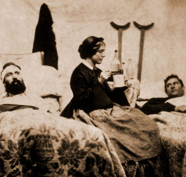 It’s the birthday of Clara Barton, born in Oxford, Massachusetts, in 1821. She was working in Washington, D.C., when the Civil War broke out, and she began tending to wounded soldiers. She was afraid that soldiers would lose too much blood if they were brought to a hospital, so she started the practice of treating the wounded at the battlefield. Eventually, she went on to found the American Red Cross.