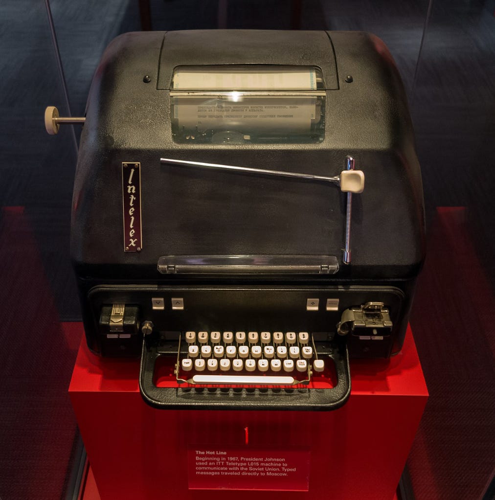 The hotline was one of the few arms-control measures that the United States and the Soviet Union had been able to agree upon since the beginning of the Cold War 17 years earlier. Given this, one might have hoped for more ceremony for the hotline's first use, but there wasn't even an official exchange of messages or greetings, just a Teletype operator test phrase that read, "The quick brown fox jumped over the lazy dog's back 1234567890," and a return message from Moscow that was completely unintelligible to the United States operators, but at least demonstrated that all the characters on the Russian machines were working correctly.