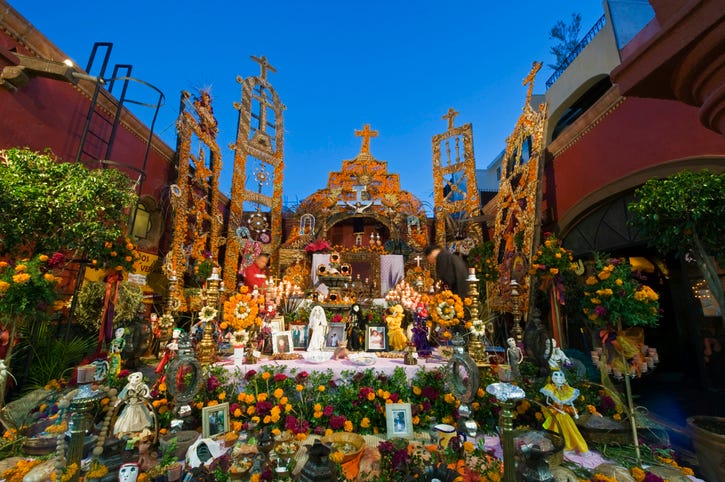 All Saints' Day is a national holiday in Catholic countries, and it's followed by the Feast of All Souls on November 2, which honors the non-saintly Christian dead. In Mexico, it marks the first day of the Día de los Muertos, or Day of the Dead, festival. Day of the Dead traditions include building altars at the graves of deceased family members and leaving offerings of gifts, favorite foods, marigolds, and elaborately decorated sugar skulls.